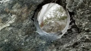 As part of the process of preparing the gouged boulders in Boulder Plot (2014) for display, an assistant hosed them down with water. Struck by the aesthetic charge of this ritual-like action, and the associations it prompted, the artist recorded the process. The footage has been transformed through the editing process to create a sort of moving meditation set to the rhythm of its gestures,the flow of water, and movement of shadows.